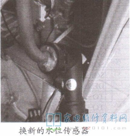 一台高科JSQ24-B家用燃气热水器(强排式),故障表现为不烧热水。上电打开热水龙头,目测水龙头出水水压正常,但热水器面板上不显示花洒、火焰、风机风叶图案,也不显示故障代码。根据经验判断,故障原因应是水流传感器损坏。断电后拆开热水器的面板,并拔下面板连接线,更换水流传感器,如图1所示。上电试机,故障排除。