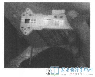 一台LG WD-12410D型全自动滚筒洗衣机,开机后面板显示“DE”,洗衣机不工作。分析检修:查询代码表得知,“DE”的含义是门开着或启动后15s内感知不到门锁闭合信号,怀疑是门锁或线束问题。考虑到门锁使用最频繁,且是易损件,于是首先更换门锁(见图2),换后上电试机,故障排除。