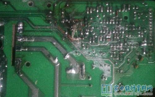 用户送来一台苏泊尔电磁炉,说溢锅不过电了,开盖拿出主板翻过来一看铜皮烧掉一根,测量IGBT桥堆全部挂了,全部换新,插电试机规律敲锅不加热,拿测pwm的小灯一闪一闪的,继续测量同步电路18v稳压管三大电容全部正常,补焊各零件,继续试机。