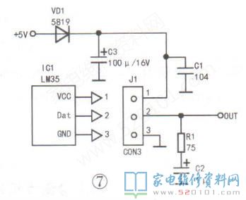 模拟温度传感器电路输出随温度变化的模拟电压,其典型应用电路如图7所示。