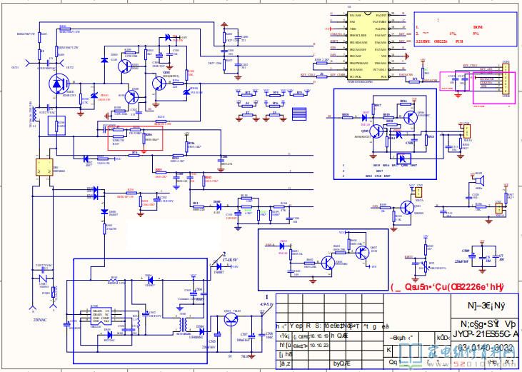 接修一台九阳JYC-21GS02电磁炉,故障表现为显示E0,首先网上查了一下资料说是内部电路问是题,用检测PWM小工具测,灯不亮,现查18V、5V,正常,测量几个大功率电阻,大电容,都正常,测了18V的稳压管,也正常。