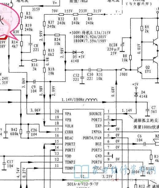 接修一台美的电磁炉,型号是C21-SK2103,故障表现为检不到锅,第一次维修维修是爆管,查Q2坏,但是更换后使用不到一个月,就出现检不到锅,抬高锅具1CM左右可以检到锅慢慢放下可加热,如此用几次后放下后不能加热。