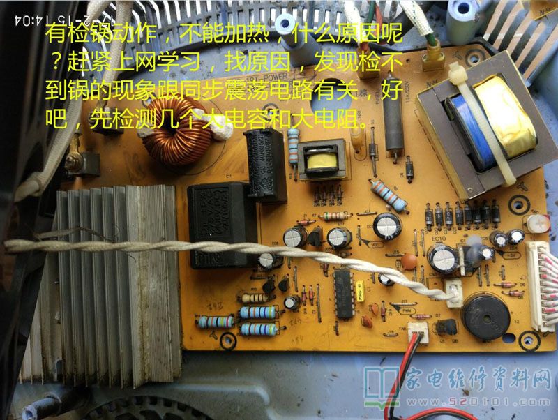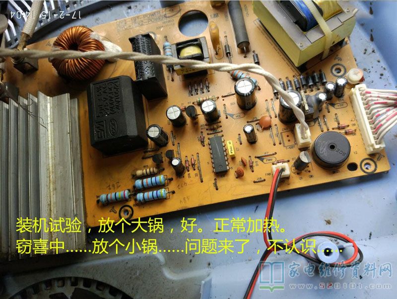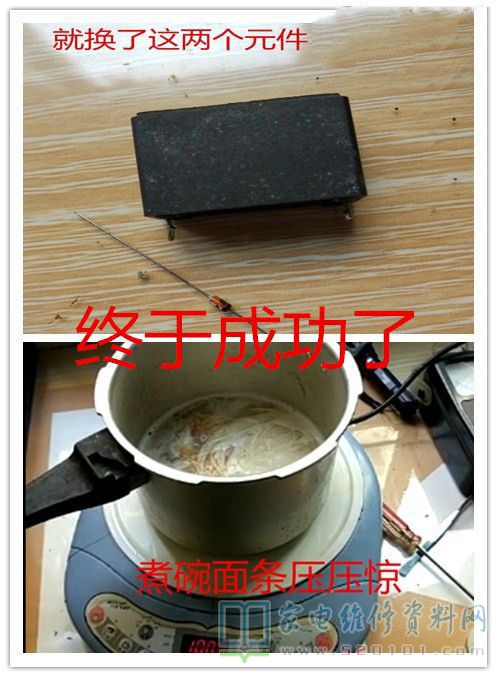 不检锅的现象几年前就开始有了,是不检小锅,复合底高压锅不可以用(可以在电磁炉上用,也可以用煤气烧,我用十年了,电磁炉近两年才不认,需用汤锅检锅后换高压锅就能用),汤锅可以用,一直没理它,现在一起弄好修复了。