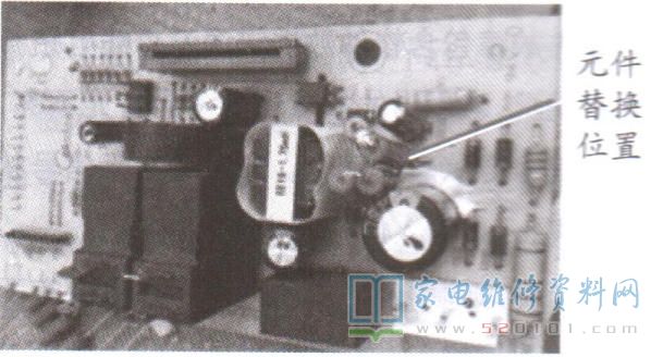 接修一台美的EG720KG4-NA型微波炉,故障表现为上电后无反应。拆开微波炉的盖板,测量AC220V电压已送到微波炉电源的输入端,判断故障在电源板上。摘下电源板单独维修,测得300V滤波电容的两脚电压为289V,正常,但电源芯片供电电压为0V,不正常(正常值应约为8V)。拔下电源插头,测300V电压不泄放,于是用灯泡放电后在路检测电源IC供电脚外置元件,发现一只2M电阻开路。由于笔者手头无同阻值电阻,于是用两只400k电阻、一只200k电阻、一只1M电阻串联后代替,如图1所示。装机试验,故障排除。