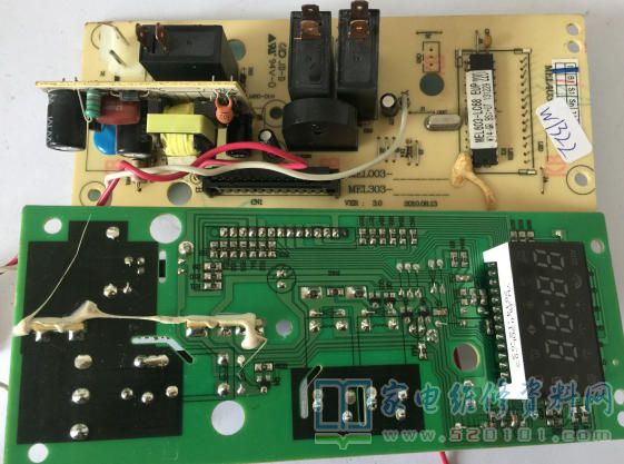 接修一台格兰仕G70F20CNIL-DG(B1 )微波炉,故障表现为不通电,无显示。拆机检查,AC220V市电已送到主板,但参数为6.8uF/450V的电容两端电压为零。断电后检测,发现主板上的1A保险丝F1开路,次级电路中的贴片整流二极管D9型号看不清,从D9的线路连接看,应是继电器12V供电的整流二极管。D9 已击穿,换用FR207型二极管,并更换F1后试机,故障排除。