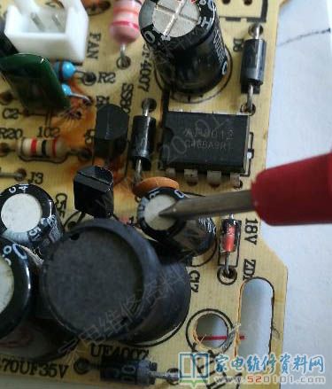 最近维修一台电磁炉,遇到一个很奇怪的故障,开机无反应,不烧保险。拆开机器,经查副电源滤波电容c22(4.7uF/400v)漏电,有十几k电阻,换上,开机仍无反应,10秒左右发出叽叽声伴风扇抖动,时间久偶尔能勉强开机。