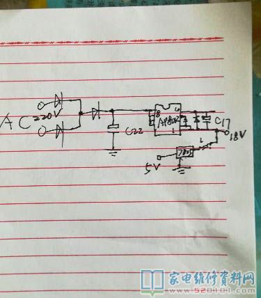 经查,AP8012的1、4脚跨接电容c17(1uF/50v)失容,换掉后故障修复。