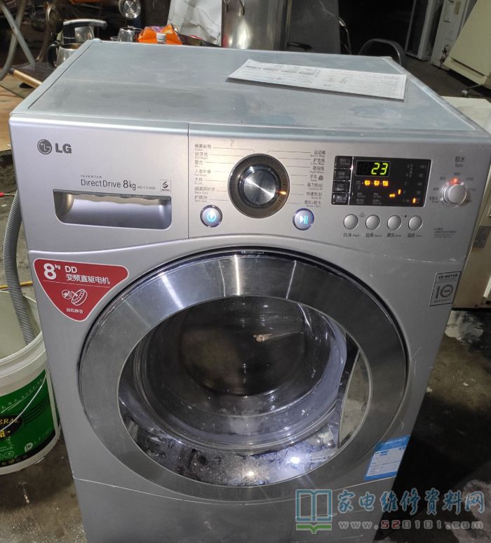 接修一台LG滚筒洗衣机,型号是LG WD-T12345D,故障表现为不进水也不排水,显示E1代码,解决方法是更换底部电机驱动板后故障消失。