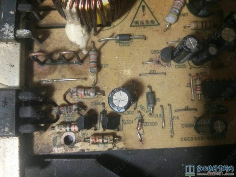 接修一台九阳JYC-21ES10电磁炉,故障表现为显示E4代码,网上查了一下此代码含义是电压过低,拆开电磁炉,检查市电取样电路上的电阻,发现R201电阻660K已变为无穷大,更换新的电阻上去之后,故障修复,试机一切正常。