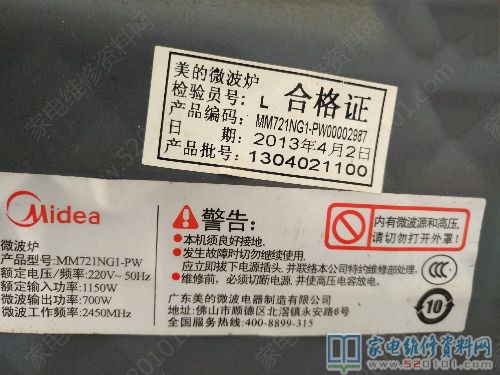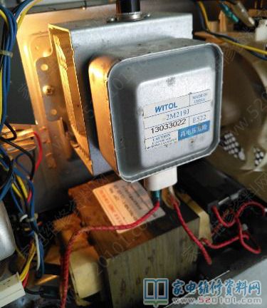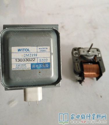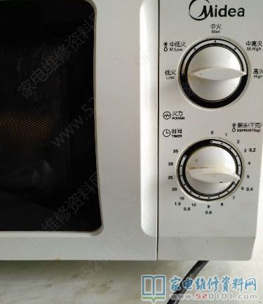 接修一台美的MM721NG1-PW微波炉,故障表现为自动断电,拆机发现160度开关跳开,用165度代换,试机加热不久后自功断电,用手摸磁控管温度很高,难道磁控管坏了,试代故障依旧,试机时观察发现风扇不转,拆下风机测量已开路,换新风机,试机还是断电,换回原磁控管,不再断电,磁控管退货,于是交付用户,用户试机说加热太慢,不认可,于是带回店,代换0.9uF电容无效,测输入电流1-3A,磁控管电流5-12A,网购磁控管M24FB-610A代换,故障排除。