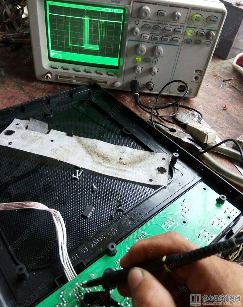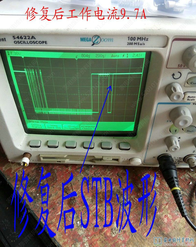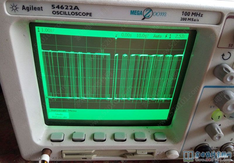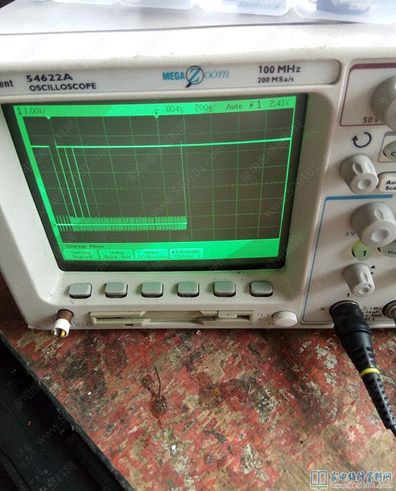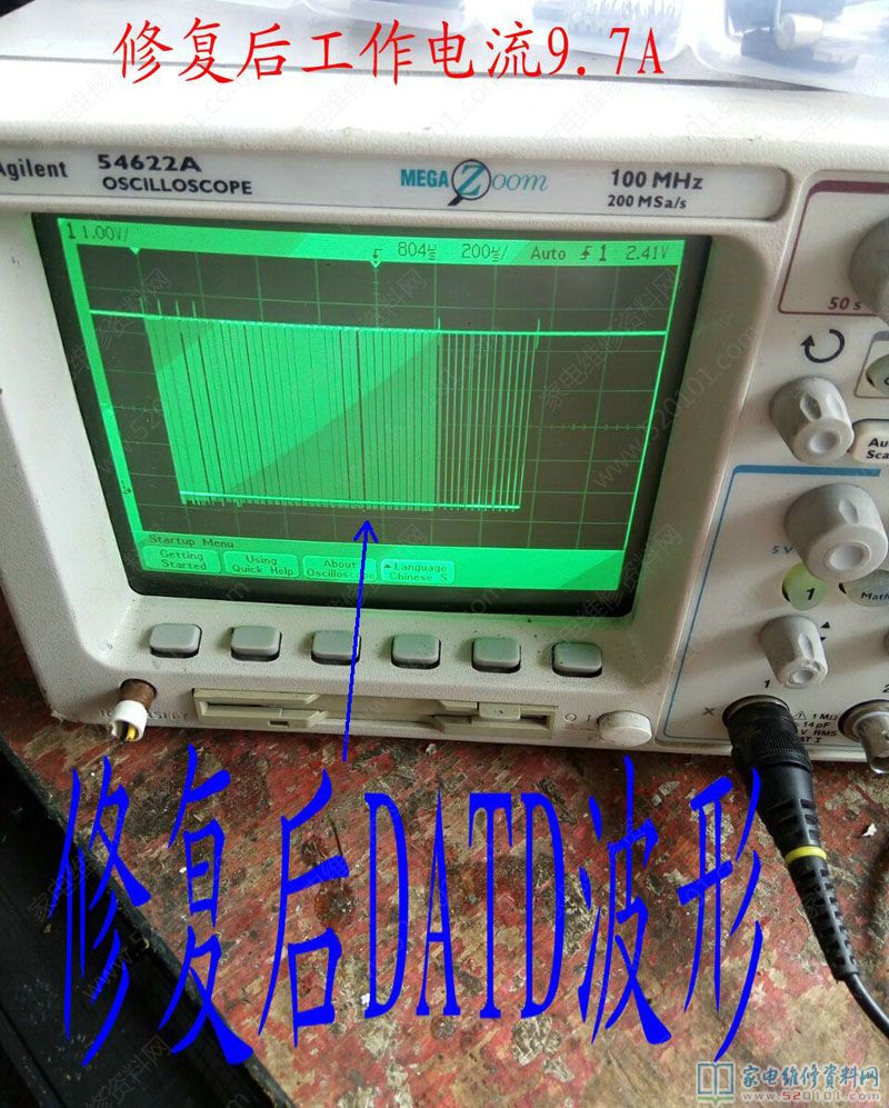接修一台美的C21-SK2101电磁炉,大管烧毁,换大管和其他顺坏原件后,通电无反应,在旧版上焊下CPU换上。通电有滴滴声,看来CPU已损坏,但是仍不能加热,测量时钟信号波形发现有点乱。换美的原装芯片1668后,仍不能加热,看来换的CPU不对路,去某宝搜索没有此原装CPU,维修到此失败,在翻箱倒柜发现有一个旧的美的主板,和这个差不多,换上后通电加热正常,修复后的时钟波形稳定清晰,工作电流也到9.6A。