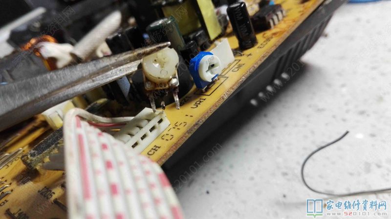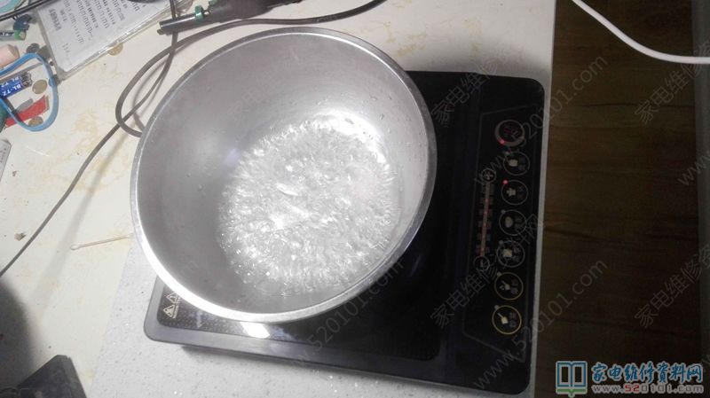 换好后通电测试,能加热了,但是电磁炉却是断续加热,就是加热10秒停5秒。难道可调电阻有问题?看着有点生锈的可调电阻,马上换掉,可是电磁炉仍是断续加热。