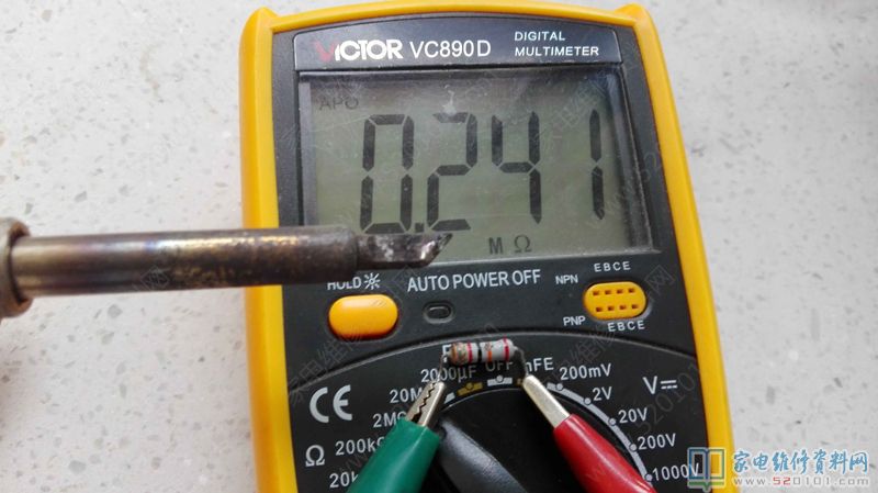 那为什么这个电阻会导致开始能加热,加热10秒就停了呢,然后过5秒又能加热呢?于是我想探个究竟,我用电烙铁在电阻附近烤了一会,发现电阻阻值很快降低。