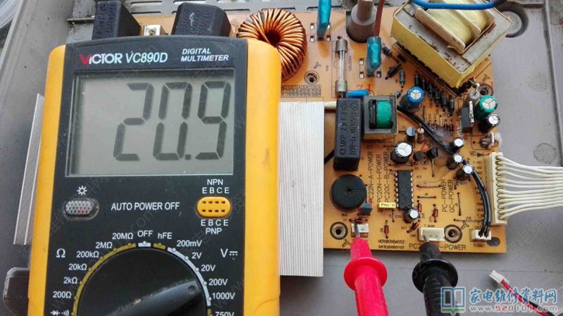 风扇针脚处为20.9V,偏高一点。我又检查了一下稳压管,原来是20V的稳压管,稳压管一端也是20.9V。