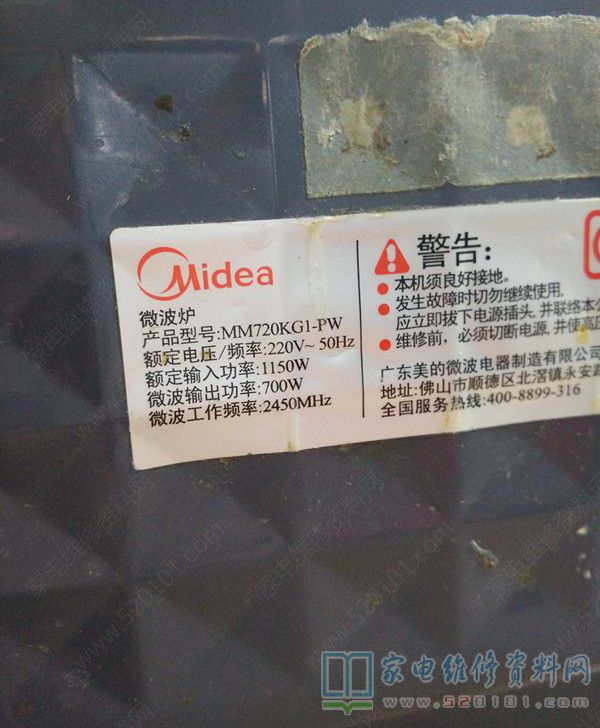 前几天一维修同行咨询,说他维修的美的MM720KG1-PW微波炉,刚开始顾客说不通电,拆机检查发现15A供电保险已经已烧毁了,万用表测发现门开关短路。检查出问题原来是门开关短路造成炸保险,更换同型号门开关和保险,试机加热正常交付用户,可是昨天他的客户又来了,打开一看检查还是一样的问题,他以为是开关质量问题,换新的上去交付用了两天之后,今天又坏了,问我此故障的原因。