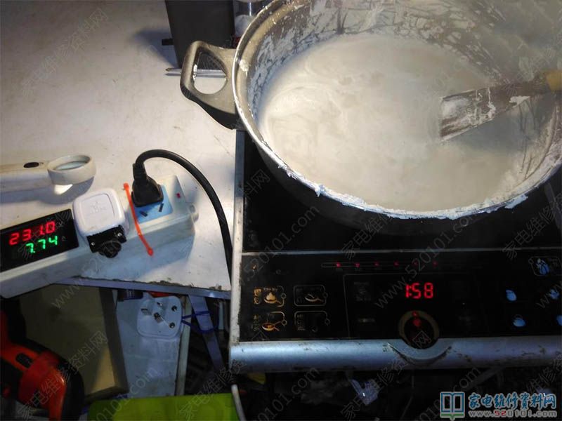 5V恢复正常,不用说芯片挂了,内心崩溃呀,注定又是一块骨头,该芯片贴纸为S01A-V6-7,芯片型号是S007 0839-E(图3),手头有几块S007 N1136-E(图4),以前代换过美的其它机型,十之八九会成功,今天看看运气了,果断换上,果然不负所望,开机一切控制功能正常(图4),加热很快,默认档位接近8A电流,最高档位有8A多电流,代换成功。其实芯片序号不重要,关键是数据最重要,只要引脚定义一致,一般是能用的。