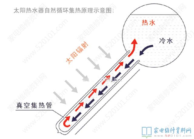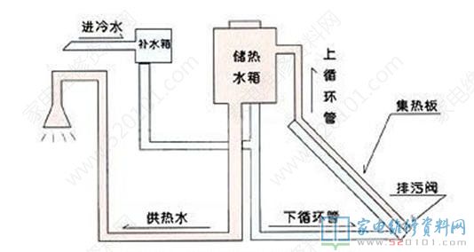 家用太阳能热水器通常按自然循环方式工作,没有外在的动力,设计良好的系统只要有5~6℃以上的温差就可以循环很好。水循环管路管径及管路分布的合理性直接影响到集热器的热交换效率。 多数情况下,自然循环家用热水器系统管路中的流态都可以视为层流。 集热器内管路系统的阻力主要来自沿程阻力,局部阻力的影响要小得多,其中支管的沿程阻力又比主管要大得多。当水温升高后,由于运动粘度减小,沿程阻力变小,局部阻力的影响变大。在一定范围内,当主管管径不变时,加大支管管径,不仅沿程阻力迅速减小,而且局部阻力也将跟着减小。一般地,支管的水力半径应在10mm以上。当主管管径达到一定值以后,增加主管管径对减小系统阻力意义不大。