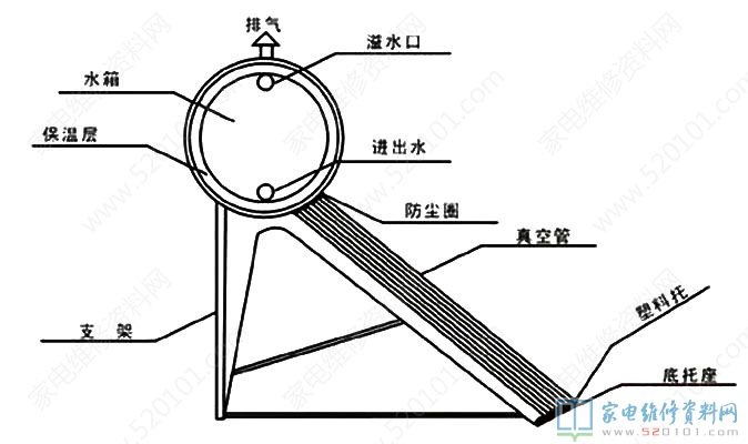 上面前言我们了解过了太阳能热水器工作原理之后,再来介绍一下太阳能热水器它的组成部件有哪些。太阳能也是由多个部件所组成的电器产品,其中集热器、保温水箱、支架等都是太阳能的主要部件之一。