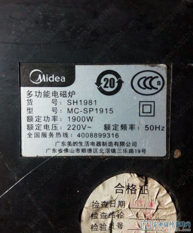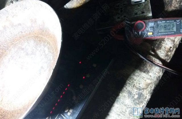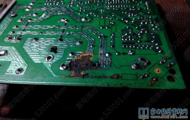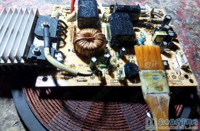 接修一台美的MC-SP1915电磁炉,故障原因是进水了,拆开电磁炉后如下图1所示,看来修复工程比较大,修还是不修。还是修吧,首先清洗主板,再把烧黑的地方接好,风枪吹干通电试机,滴的一声,什么元件都没有坏,看来看着烧的越黑的越值得一搞,高兴之余装好,放锅,通电试机,滴!滴滴……还是不加热,不能高兴太早。