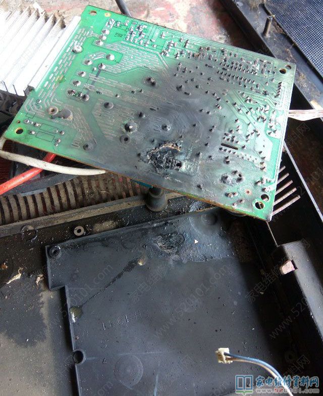 测量同步电压为0.1V和4.66v显然不对,断开芯片的第20脚同步电压低的起来了,为2.99V,感觉大事不妙,芯片坏了,翻箱倒柜找到一个旧芯片,装上同步电压为2.99v和4.66v,不知道这个机子的同步电压设定值怎么相差这么多,再次通电试机,工作电流为8A.烧一壶水。试机一切正常。最后主板上绝缘漆,灯板上绝缘纸。