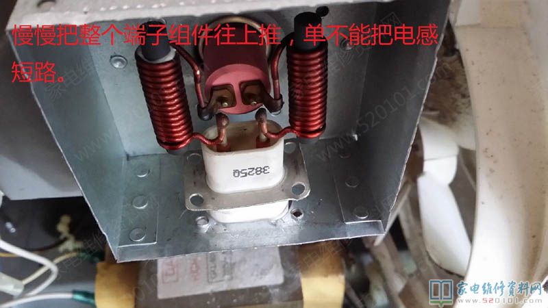 慢慢把整个端子组件往上推,但不能把电感短路