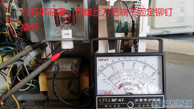 这台微波炉,测得高压端子漏电,等待手术