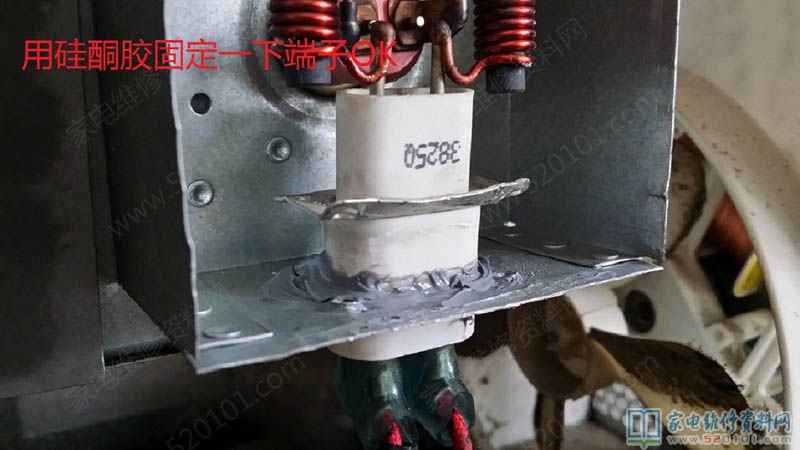 我们在维修微波炉的时候,经常会碰到微波炉磁控管高压端子漏电的现象,遇到这种情况,要不就换端子,要不就换磁控管。换端子没有专业的碰焊设备弄不了,换磁控管维修成本太重,客户接受不了。在这里我介绍一个低成本的维修方法跟大家分享,已经应用在上百台成功案例,绝对好用,具体请看下图。
