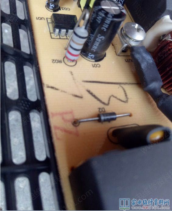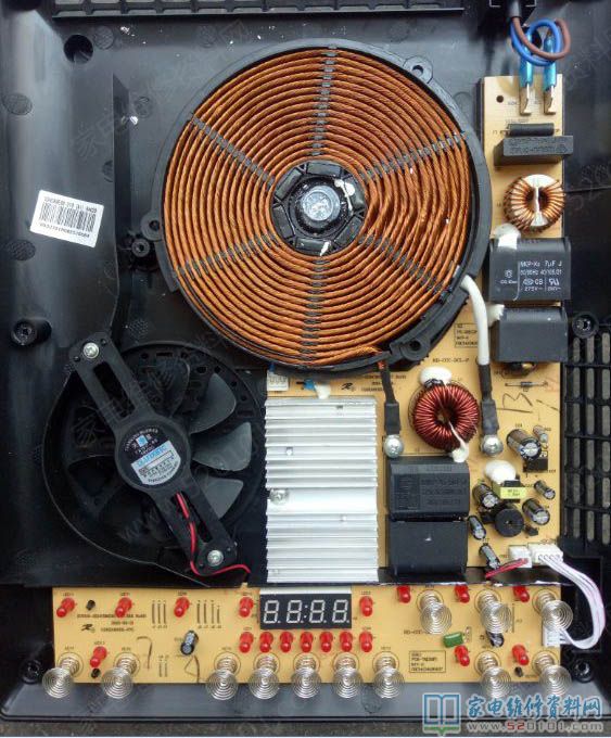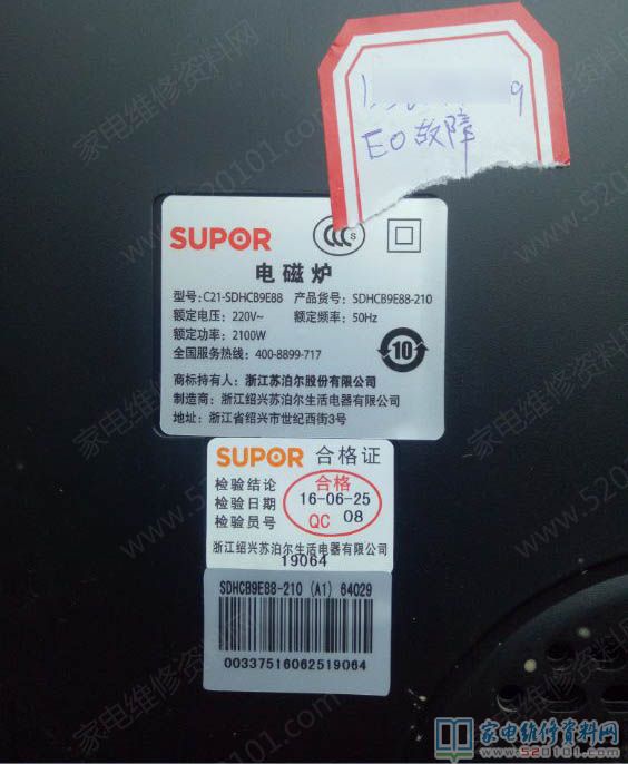 此文是没有技术含量的,只是给大家一个参考。此电磁炉主板型号好像是:SBE-DCL-CCC-SDHCB210-P27 或 RD-CCC-DCL-P ,电路板正面就一个通电源芯片的红红黑电阻,反面全是贴片电阻,贴片零件,原来想检测是不是电阻问题的,看到贴片的零件就头大。