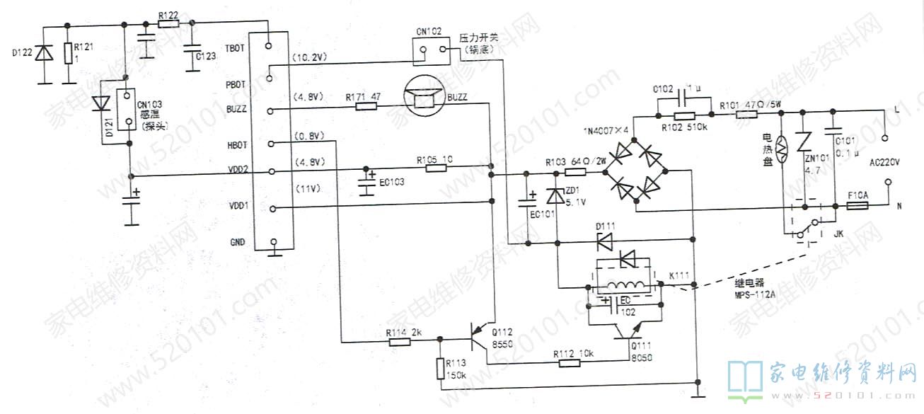 美的MY-12CS502A电压力煲实绘电路图