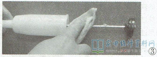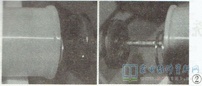 故障现象4:洗衣机脱水时震动大。分析检修:先检查洗衣机机脚是否处于水平位置,然后用手按压内外桶,如图1所示,感受吊杆阻尼的软硬度,及活塞伸缩的均匀度。