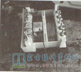 接修一台美的50升的储罐式电热水器,故障表现为不通电。首先测量AC220V电压正常,接下来取下热水器的电源板,发现电容EC2已鼓包。取下电源板单独检测,二极管D1~D4正常,但变压器T1初级绕组开路,次级绕组正常。目测变压器(型号是EI41-054-2)的初级绕组线圈没有过流变色现象,于是取下变压器,发现初级绕组下方有一个方形超温熔断器,如图1所示。