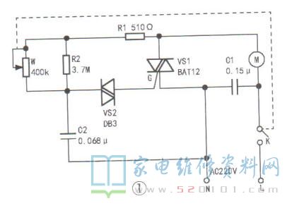 例1:一台吸尘器,开机后电机高速运转不受控。分析检修:经查双向可控硅VS1击穿,换上一只型号为BAT12的双向可控硅试机,故障排除。