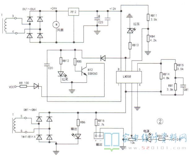 T的⑤-⑥绕组的感应电压经DB1~DB4整流后,其脉冲作为LM358的基准电压。