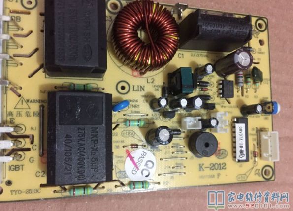 接修一台海信HX20-9910语音电磁炉,故障现象是开机就报电压过高,拆机测量,显示板12V变19V,电压比较器18V、25V都变300V,后检查到整流桥,发现开路,更换后电压各方面正常,机器修复,试机一切正常。