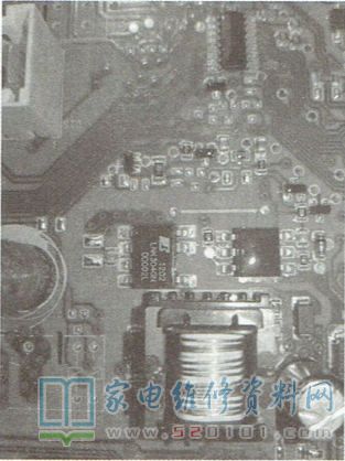 最近接修一台西门子WM12S3600W型滚筒洗衣机,接通电源后无反应。分析检修:拆开机箱后盖,取出电源板目测,发现电阻R71/R72( 100Ω/3W )烧裂,拆下测量已经开路。此电阻为电源板上位号IS5的贴片开关电源IC(LNK304GN )供电电阻。这个电阻烧坏,IS5短路的可能性较大。在路测量IS5的⑤脚(+300V )对地短路,判断IS5已经损坏。由于没有买到贴片封装的LNK304GN,于是将直接封装的LNK304PN的引脚用镊子稍稍折弯点,然后焊接上,如图1所示。