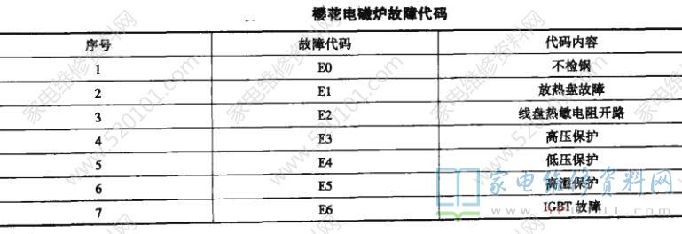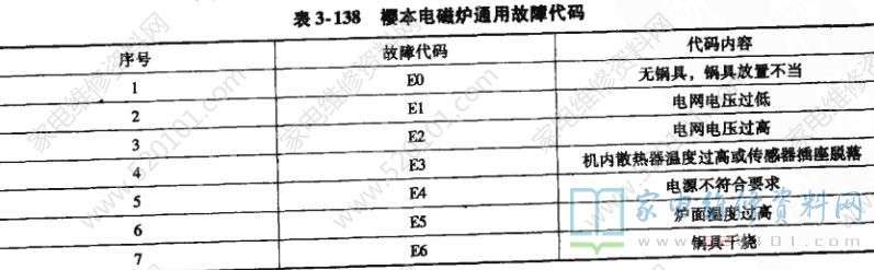 力邦EC-19LE电磁炉出现E1、E2、E3、E4、E6、E0、E7、E8、E9、EE、H1、H2故障代码后,请按照下表右侧的代码含义进行检修排查。 ...