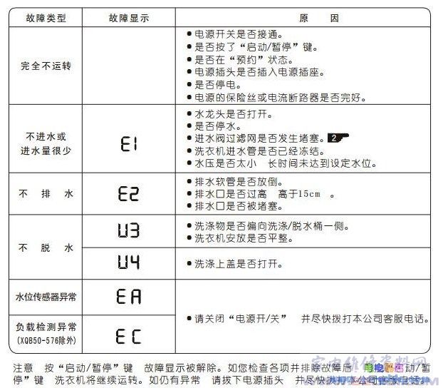 洗衣机故障代码