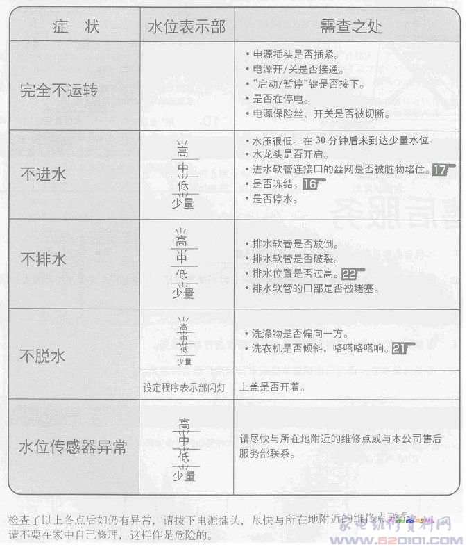 三洋全自动洗衣机故障代码(型号通用)