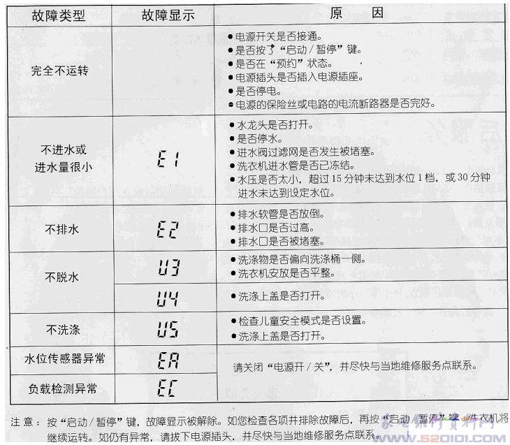 格兰仕滚筒洗衣机面板指示灯闪烁含义代码