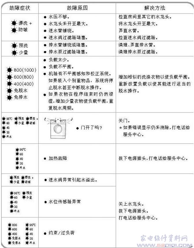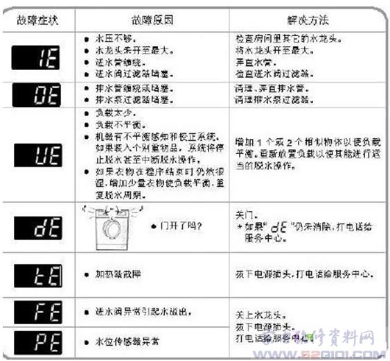洗衣机故障代码