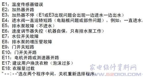 洗衣机故障代码