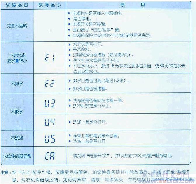 格兰仕滚筒洗衣机面板指示灯闪烁含义代码
