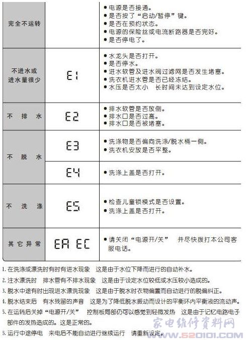 松下滚筒洗衣机故障代码表