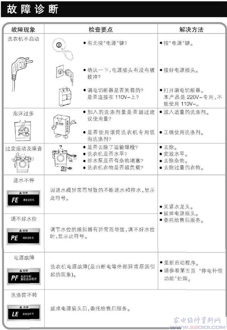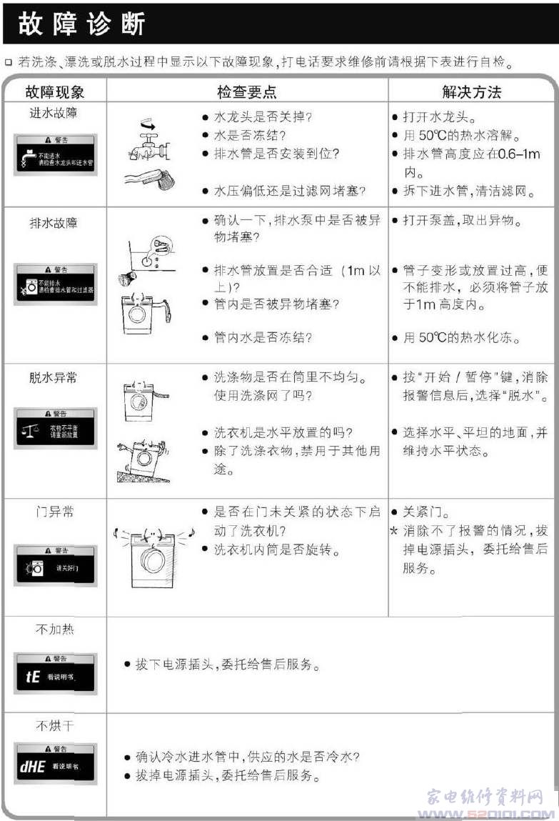 洗衣机故障代码