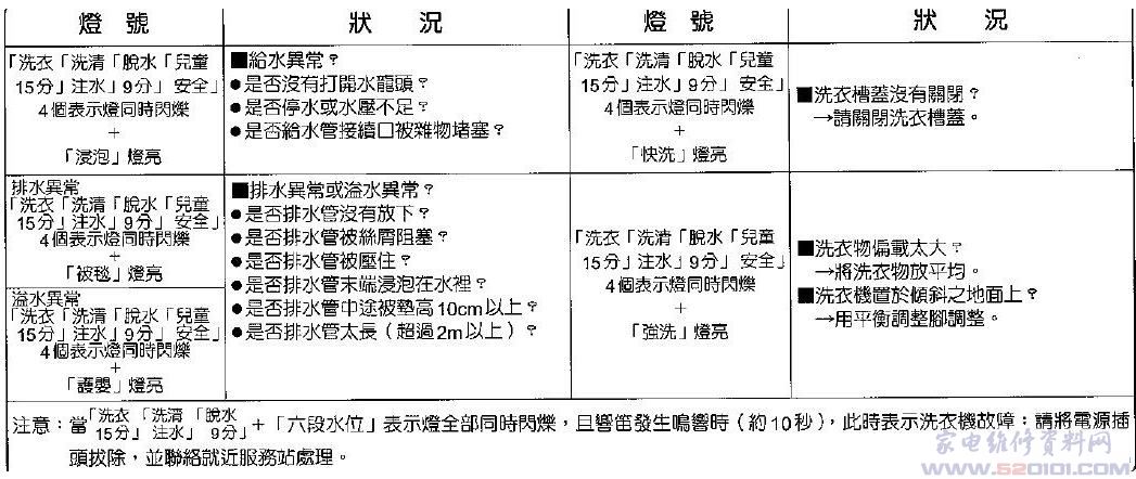KOLIN歌林BW-J128S洗衣机故障代码表