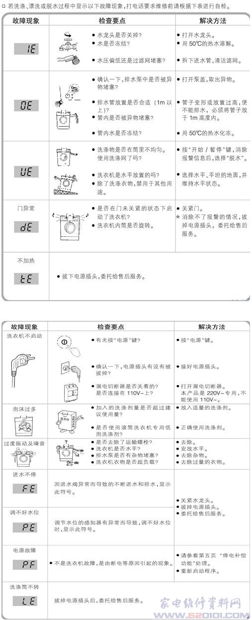 格兰仕滚筒洗衣机面板指示灯闪烁含义代码