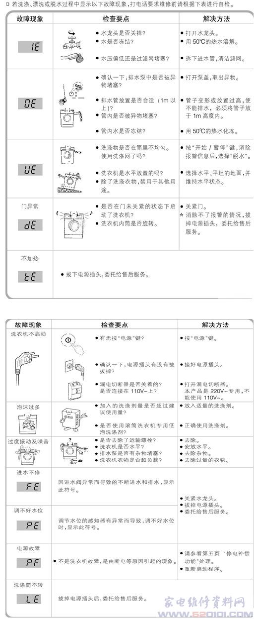 洗衣机故障代码