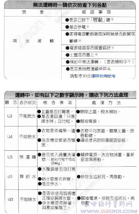 KOLIN歌林BW-1108S洗衣机故障代码表