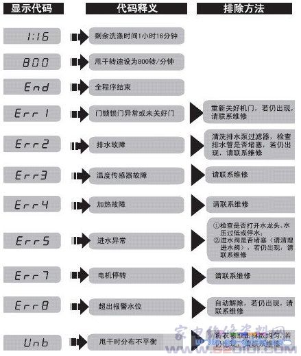 洗衣机故障代码