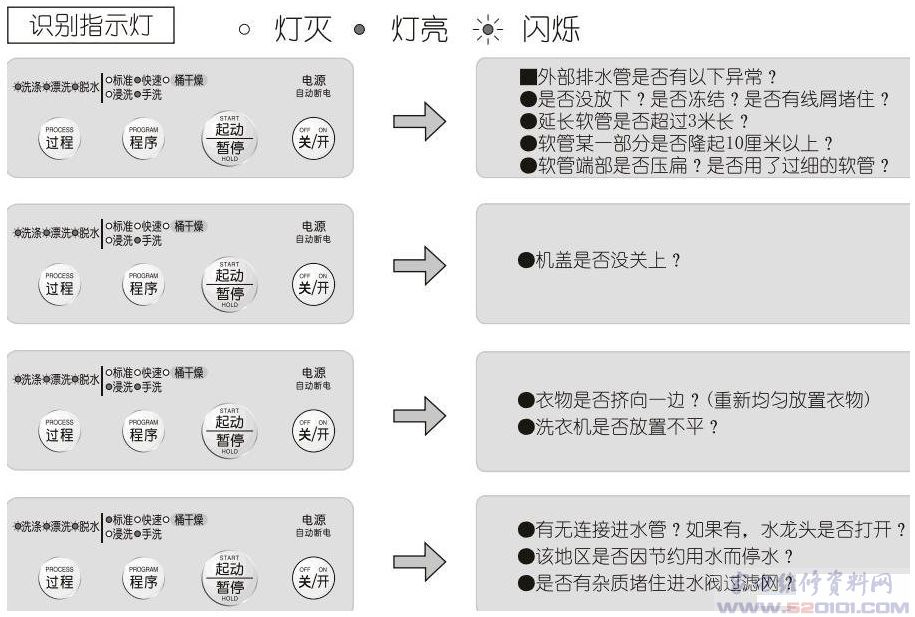 格兰仕滚筒洗衣机面板指示灯闪烁含义代码